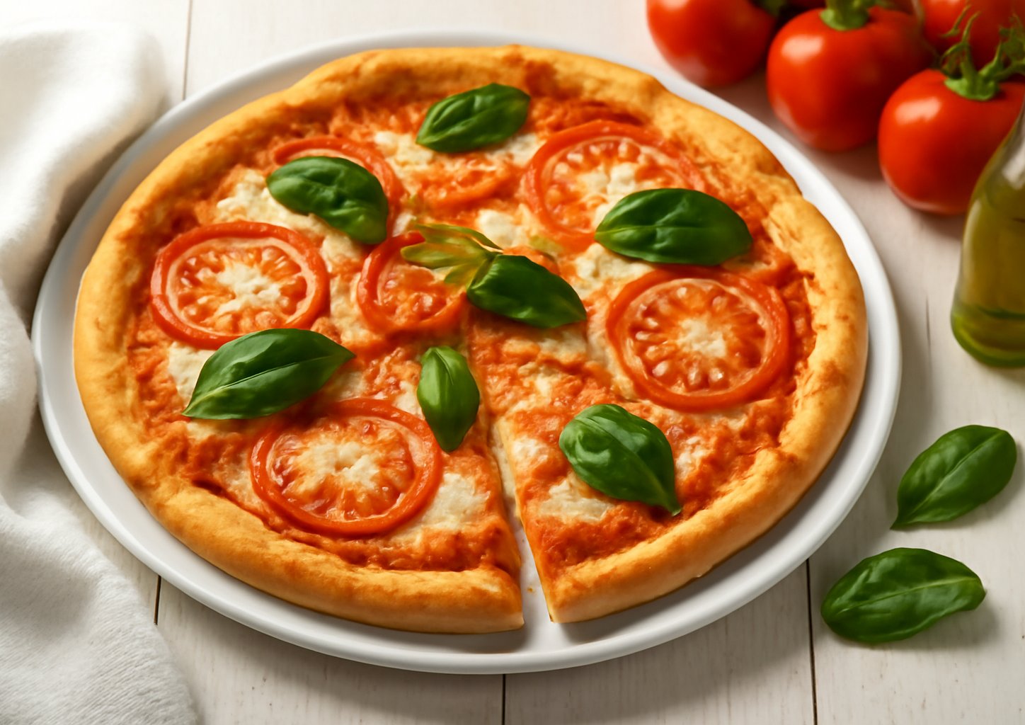 Равномерно распределите соус по основе, оставляя чистыми 1-2 см по краям. Выложите сыр моцарелла и украсьте несколькими листьями базилика.Шаг 9