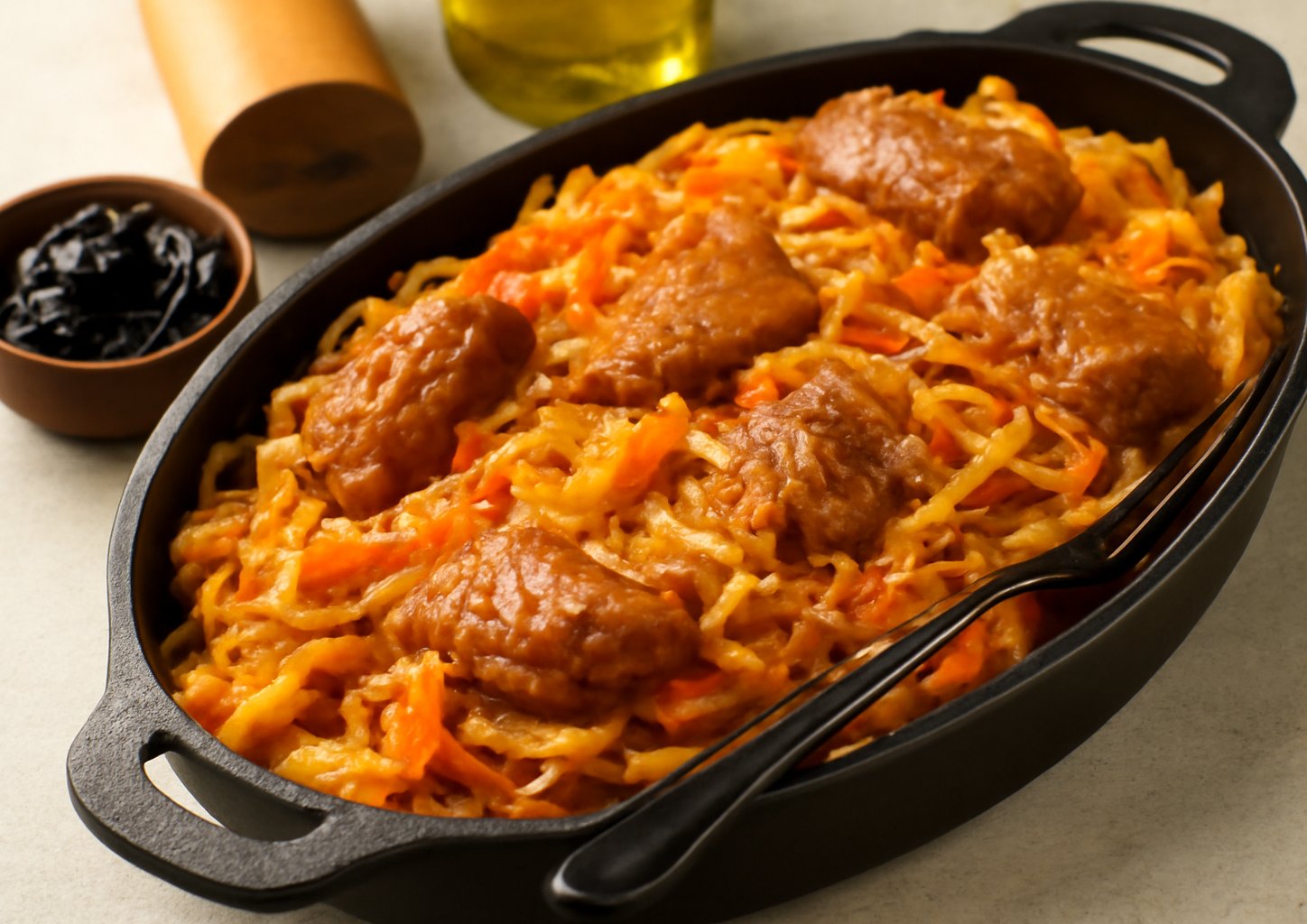 Тушёная капуста с говядиной и черносливом