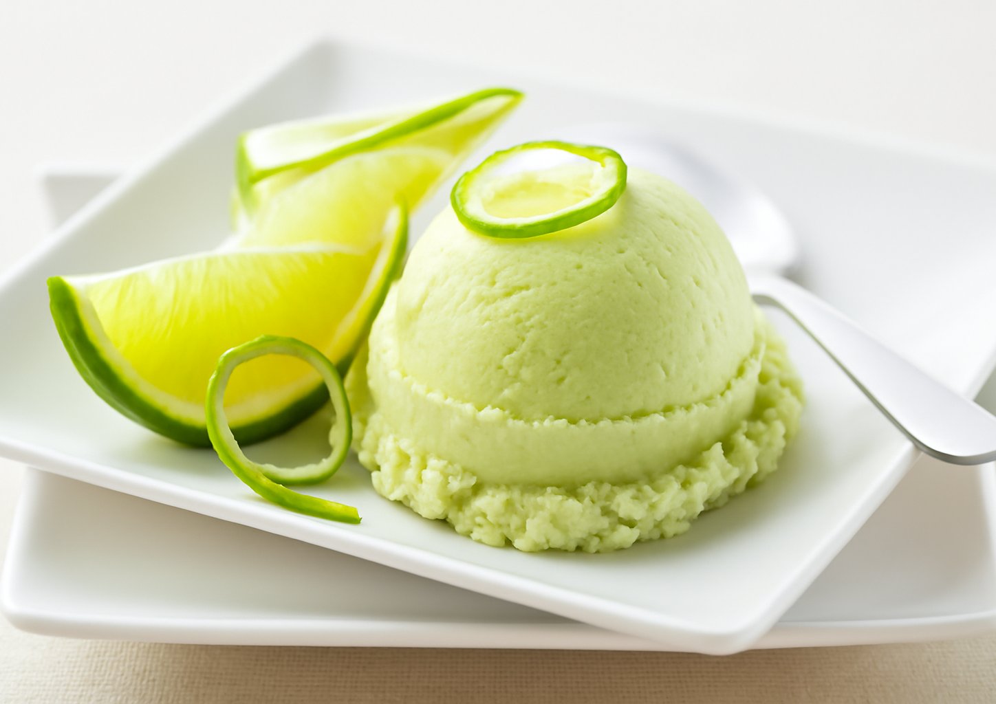 Подавать лаймовое мороженое, украсив веточками свежей мяты, ягодами и свежими фруктами.