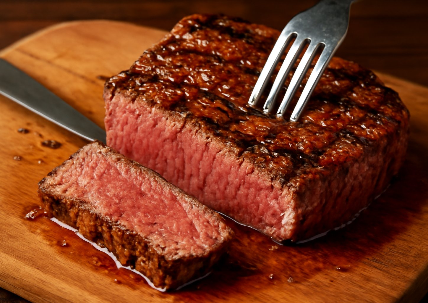- Мясо говядины толщиной 2-3 см, стейк стриплойн350 г